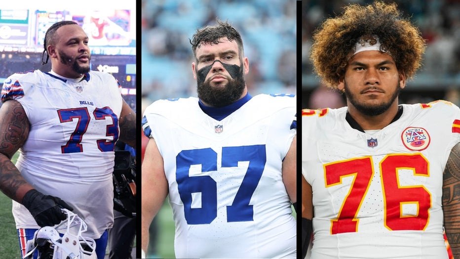 NFL players Buffalo Bills offensive tackle Dion Dawkins, Dallas Cowboys center Brock Hoffman and Kansas City Chiefs offensive tackle Kingsley Suamataia, all responded to Paul’s challenge. (Getty Images)