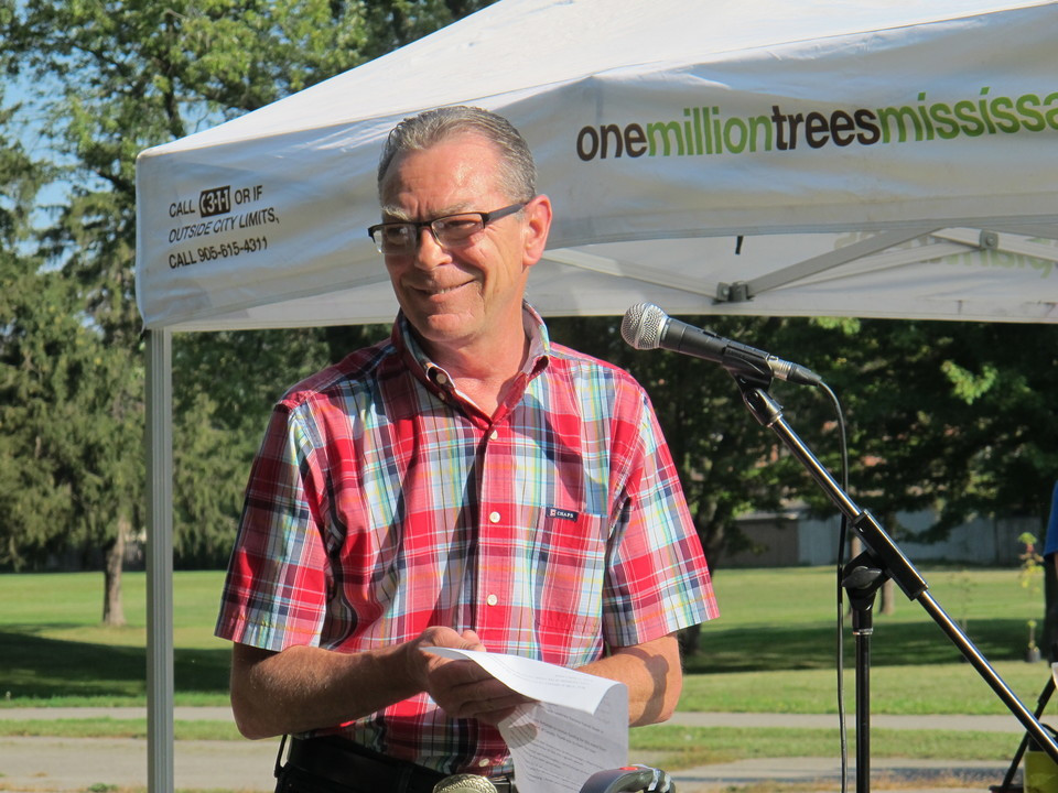 Late-Mississauga Councillor Jim Tovey speaking at the One Million Trees Mississauga launch event at Serson Park on September 22, 2017.