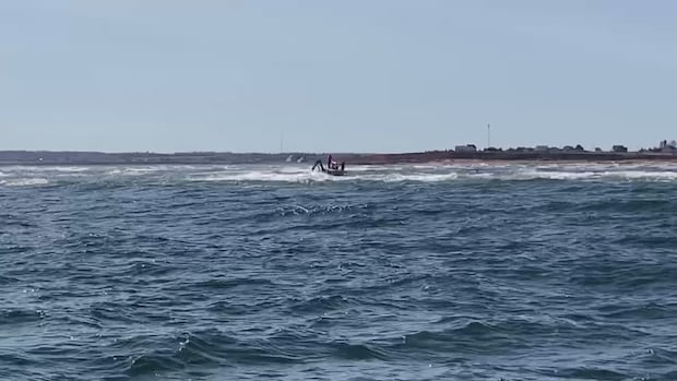 The crew of a fishing vessel that started taking on water on P.E.I.’s North Shore has been rescued, according to reports from people at the scene. Video from the scene shows the crew waiting for rescuers to arrive. Submitted by Timothy Wall.