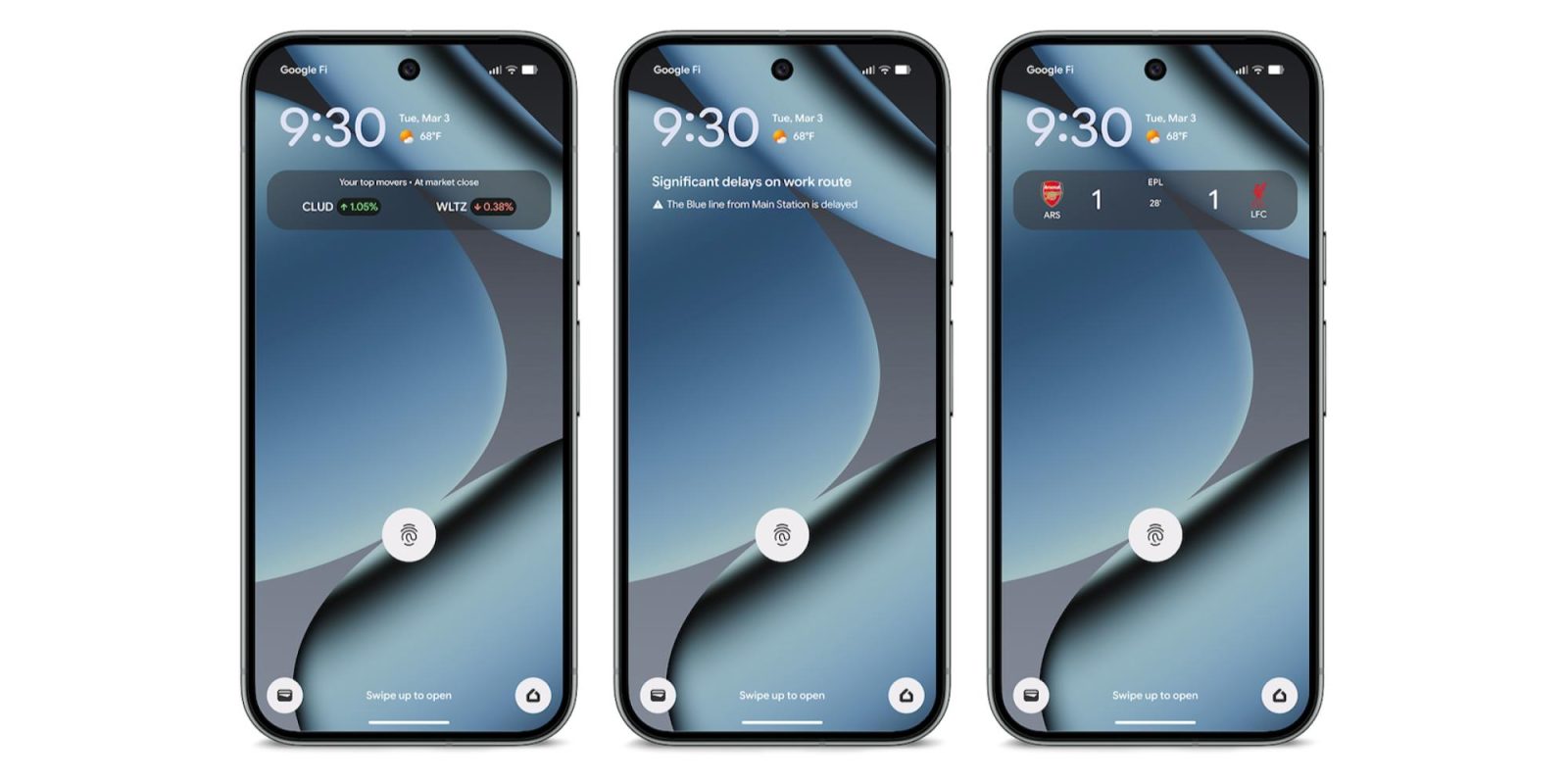 Last week, Google publicized At a Glance showing real-time updates about commute conditions. For example, you might see “Significant delays on work route” at the top of your lock and homescreen. Google will provide specifics underneath like “The Blue line from Main Station is delayed.” This is an extension of the existing “Commute” feature that shows “Traffic info and travel time.”