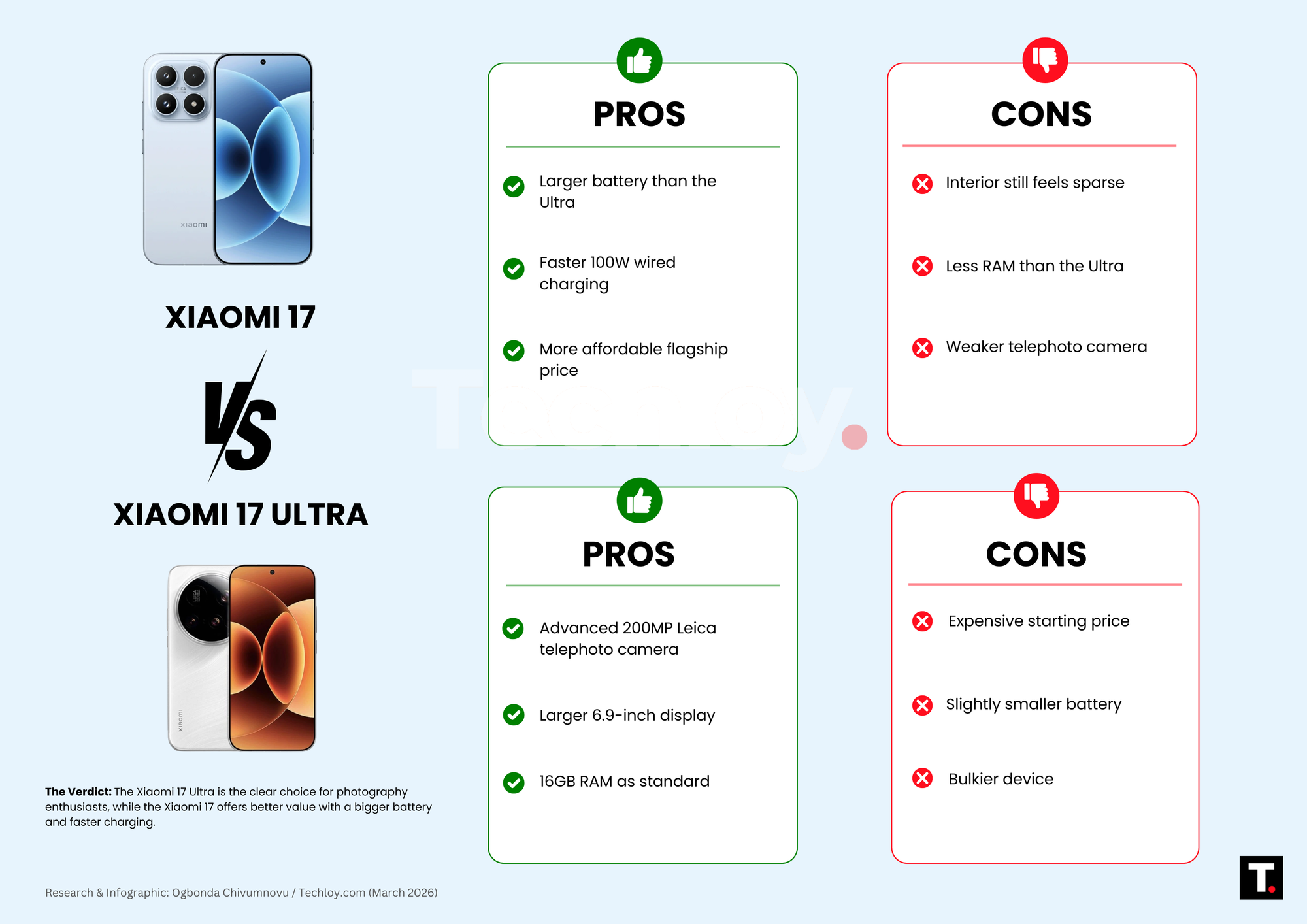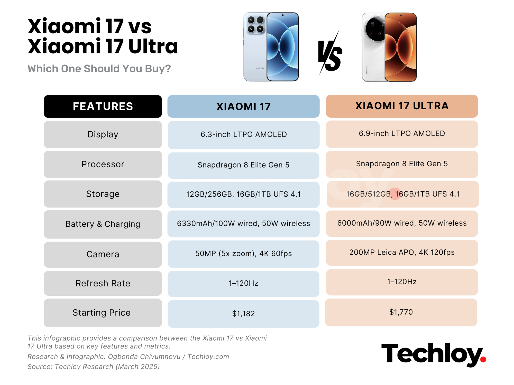 Verdict: Xiaomi 17 wins easily for value.