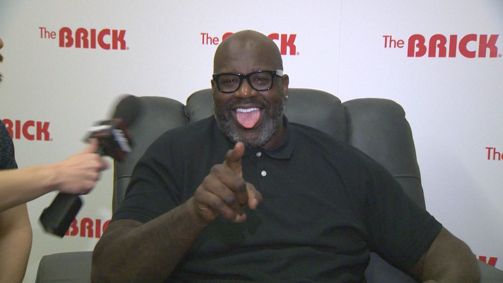 O’Neal was in fact in Edmonton because he partnered with The Brick, which was founded in Edmonton, on a new big-and-tall line of furniture. O’Neal took part in the line’s unveiling at the Edmonton Convention Centre on Wednesday morning.