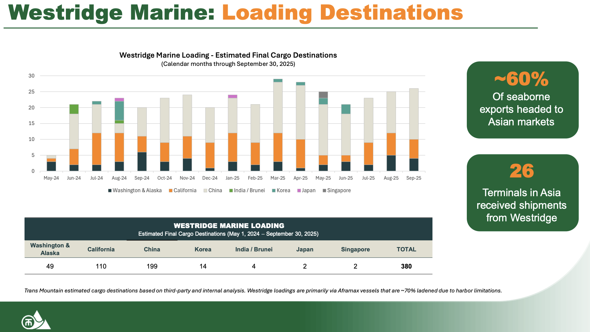 Both China and India have purchased Canadian oil from Trans Mountain since the expanded pipeline went into service in May 2024, the company reports.