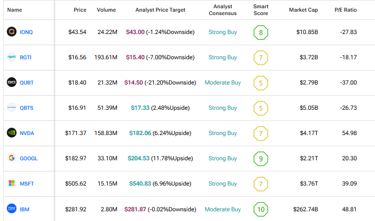 Using TipRanks’ Comparison Tool, we’ve brought together some of the most prominent stocks in the quantum space to see how they stack up. It’s a quick way for investors to get a clearer view of each company’s position, and a better sense of where the industry is headed overall.