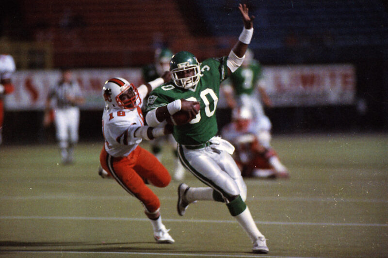 With Montreal in 1983, he rushed for a career-best 603 yards (averaging 5.9 yards per carry), caught eight passes for 128 yards and averaged 27.7 yards per kick returns en route to being named the East Division’s Most Outstanding Canadian — all of that at age 21.
