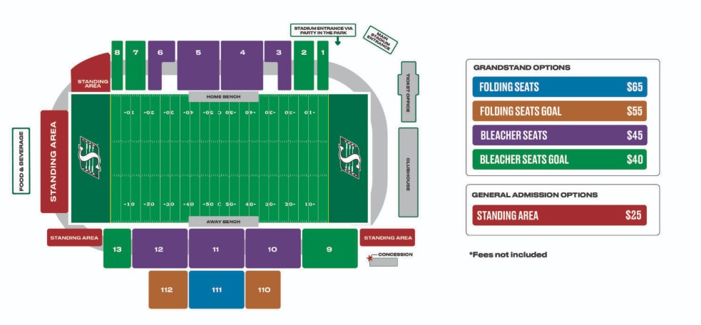 Fans will have the option of watching the game at Griffiths Stadium from the grandstands or a standing-only area. (Saskatchewan Roughriders)