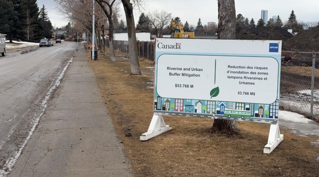 Sign at EPCOR site where construction is underway for flood management on March 19, 2026 (CityNews)