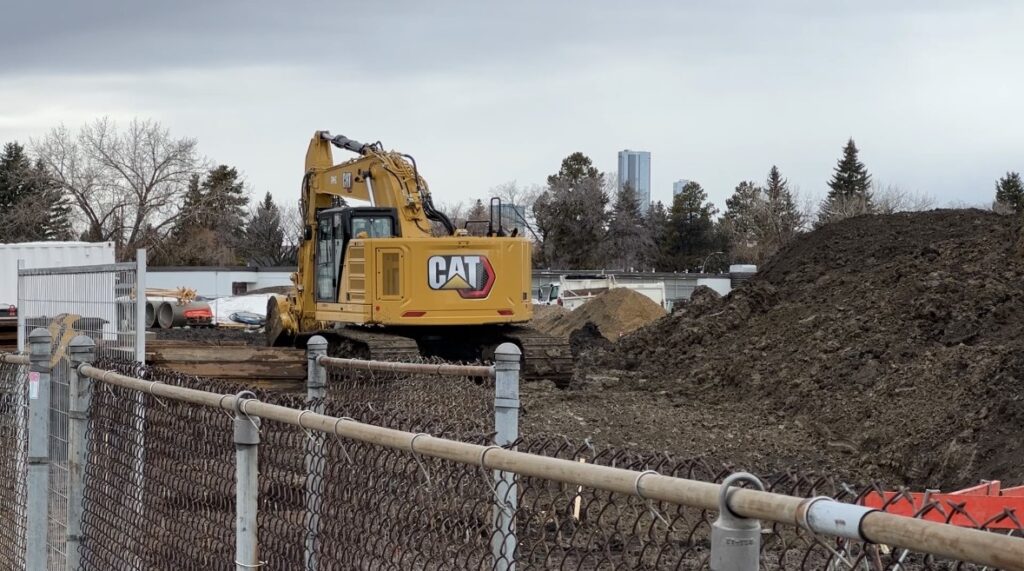 Trucks seen at EPCOR site where construction is underway for flood management on March 19, 2026 (CityNews)