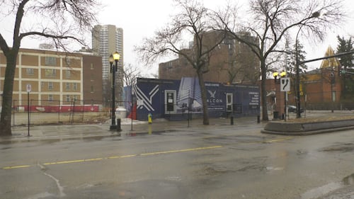 Downtown student housing The site of the Falcon Two tower at 10003 104 St. in Edmonton on March 20, 2026. Work on downtown housing projects that will provide 550 units for students is slated to break ground in Spring 2026 with help from a city incentive program. The five projects are receiving funding from the City of Edmonton’s $15-million Downtown Student Housing Incentive, which is part of its Housing Accelerator Fund Action Plan.