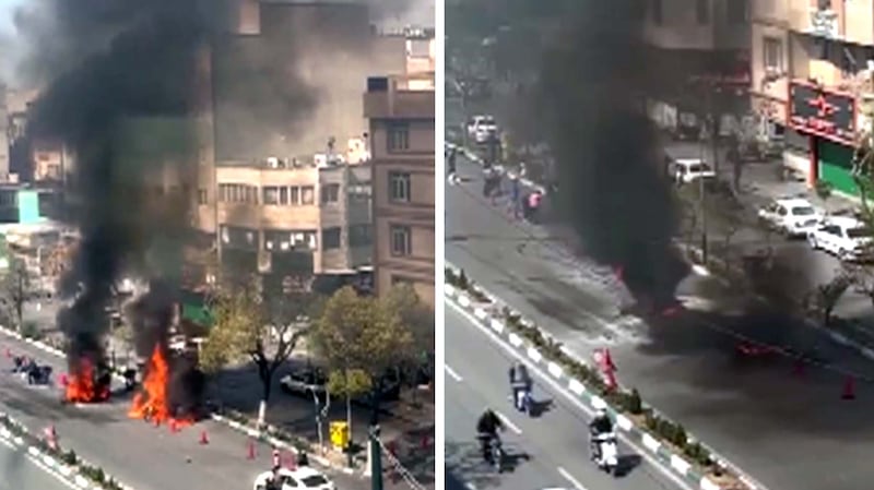 Tehran explosions These images from video shared on March 20 show the aftermath of a strike at a checkpoint in Tehran, March 18, 2026. Trump says U.S. near completion of its goals