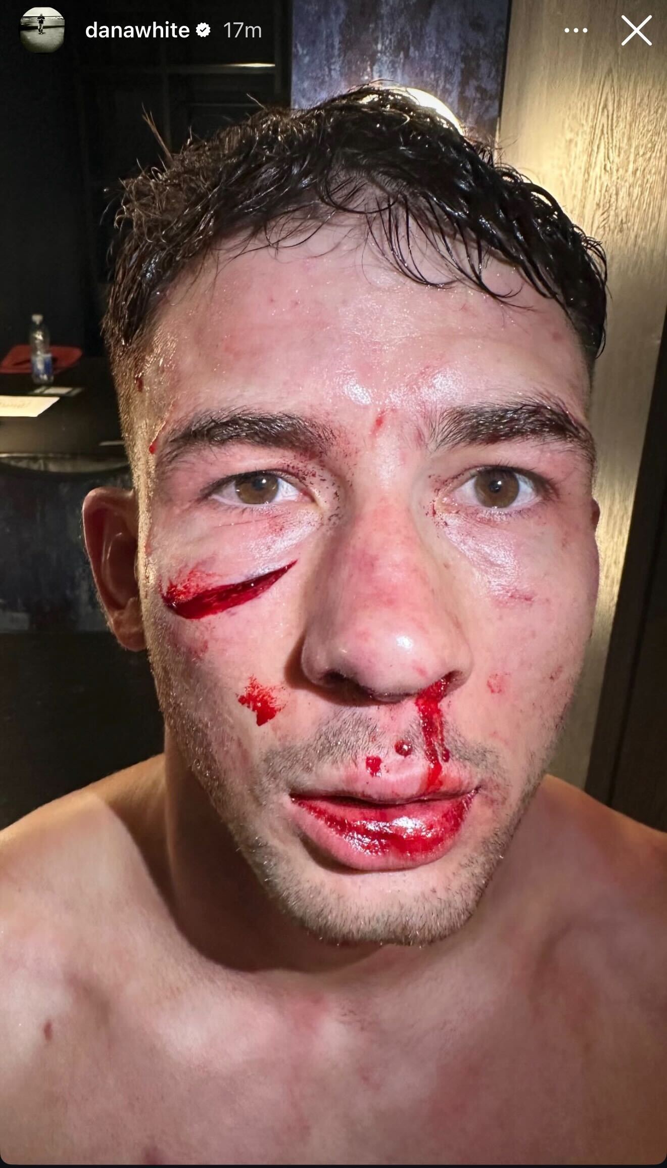 After the bout, UFC CEO Dana White decided to share — as he typically does in these types of situations — the before and after of the medical care Sola received following the all-out war with Jones.