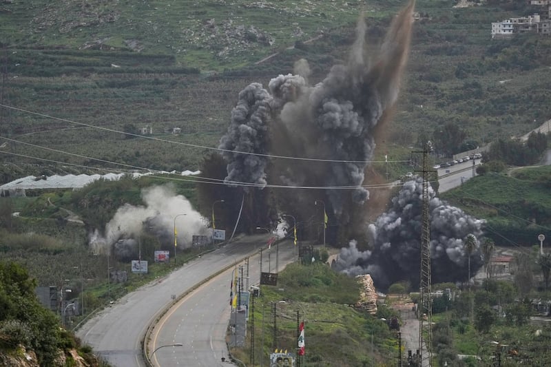 Smoke and debris rise from an Israeli airstrike that hit the Qasmiyeh Bridge near the coastal city of Tyre, Lebanon, Sunday, March 22, 2026. (AP Photo/Mohammad Zaatari) Smoke and debris rise from an Israeli airstrike that hit the Qasmiyeh Bridge near the coastal city of Tyre, Lebanon, Sunday, March 22, 2026. (AP Photo/Mohammad Zaatari)
