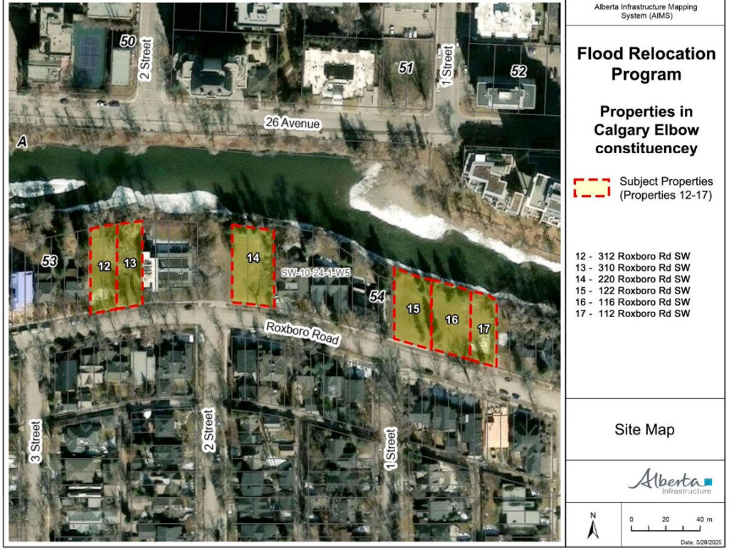 Lots up for sale in Calgary’s Roxboro community that were flooded in 2013 and purchased by the province to allow for flood mitigation. (Alberta Infrastructure)