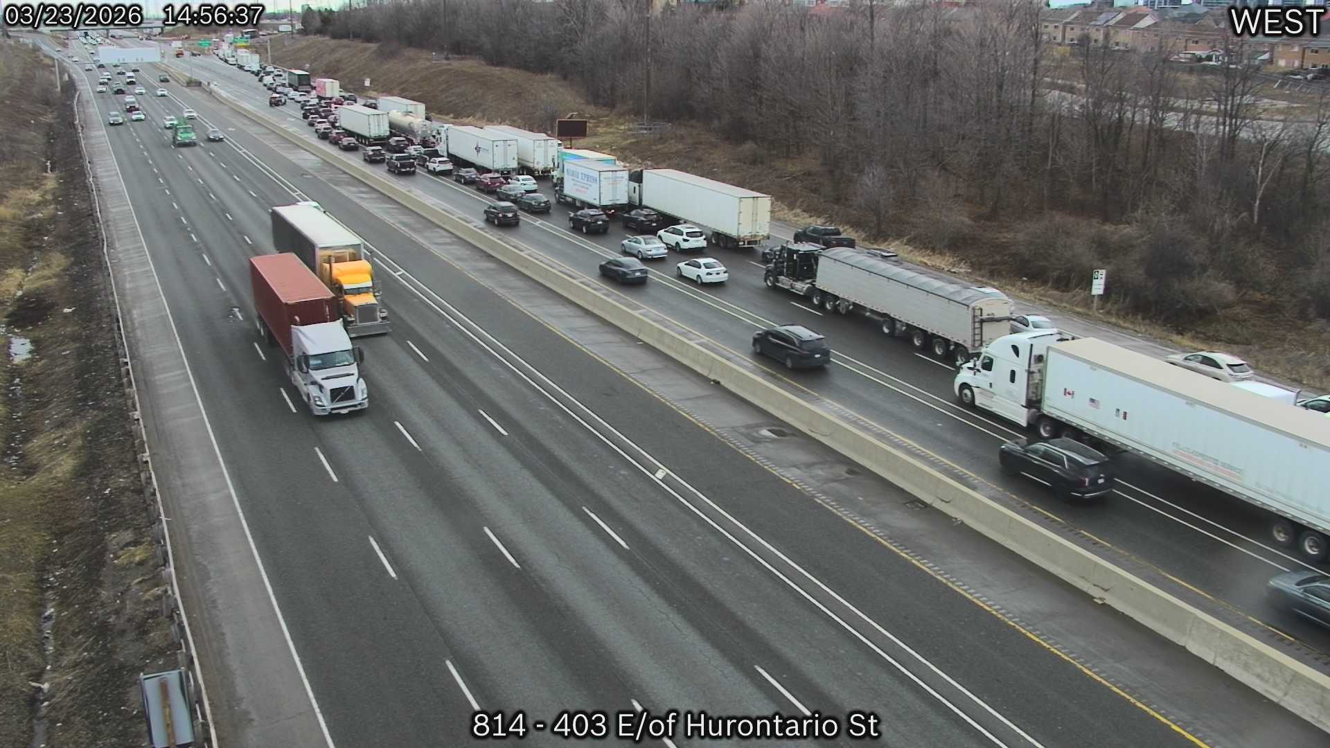 Images from traffic cameras show vehicles being diverted off the highway onto Hurontario.