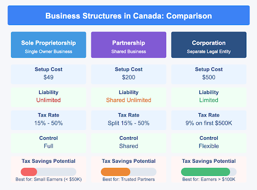 Match goals to Mississauga’s scene—solos for low-risk like home DTC, partnerships for teams in creative, corps for funded scale in tech. Liability matters in the litigious GTA; incorporation wins. Taxes: Corps defer, solos easy. Shopify suggests solos to $100K, then upgrade.