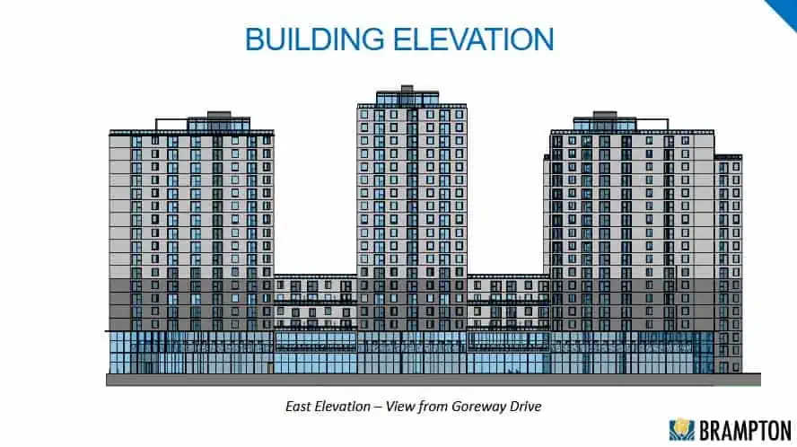 Developers are seeking a land use change to build four towers up to 20-stories-tall that would bring nearly 650 new units including affordable housing to Brampton.