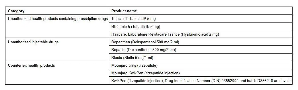 Health Canada says none of the seized items have been authorized, meaning they have not been assessed for safety, efficacy and quality.