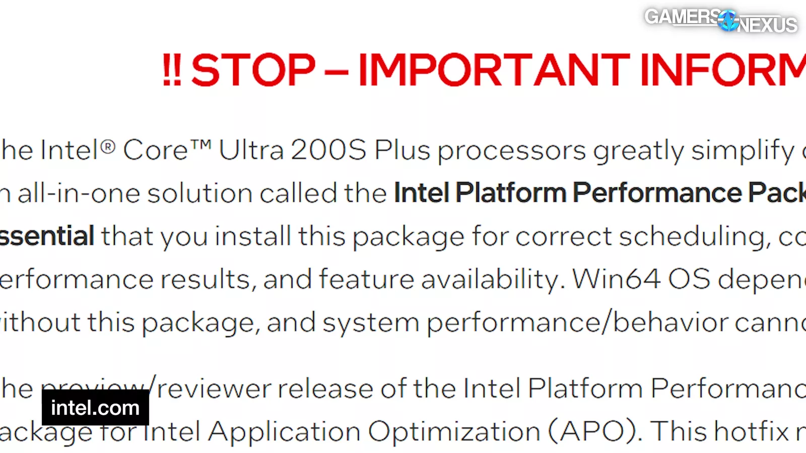 Before then going on to say that the Intel Platform Performance Package, or the PP Package, for short, or the PPP for even shorter, must be installed in order to correctly activate “scheduling, core parking, idle power, performance results, and feature availability.” Intel warns, in both bold and underline, that a Windows system won’t work right without this. Joke’s on them, because Windows never works right.