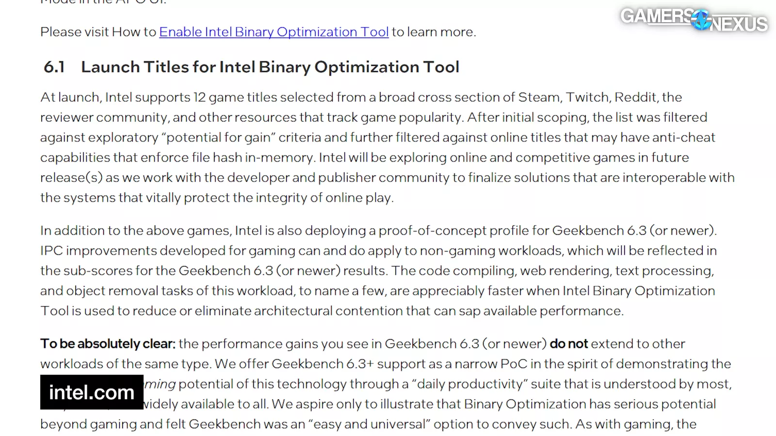 Intel says that the Binary Optimization Tool currently only works in 12 applications. It’s also opt in, meaning it’s not intended to be something you use by default. So, we’re not testing it by default. The 12 applications it supports include: