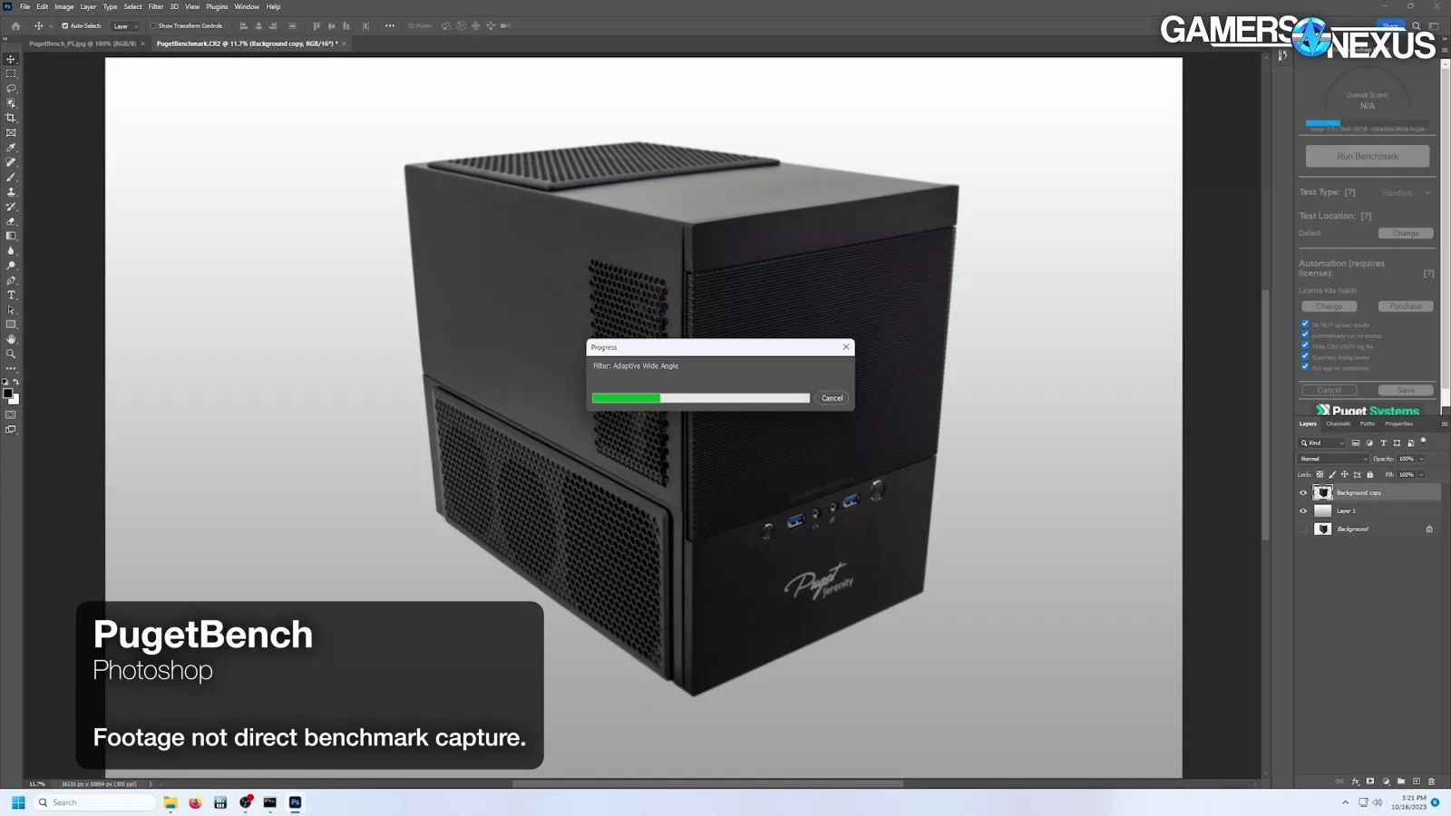 Adobe Photoshop testing via the Puget Suite is next. This testing measures performance in points by running automated sequences of filters, scales, warps, and other Photoshop functions.