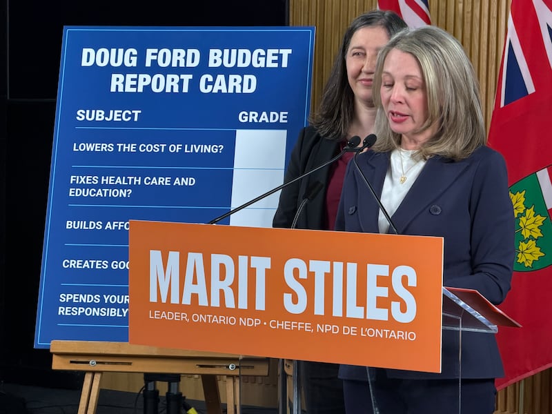 “This budget fails the test to meet Ontario’s priorities,” NDP Leader Marit Stiles said.