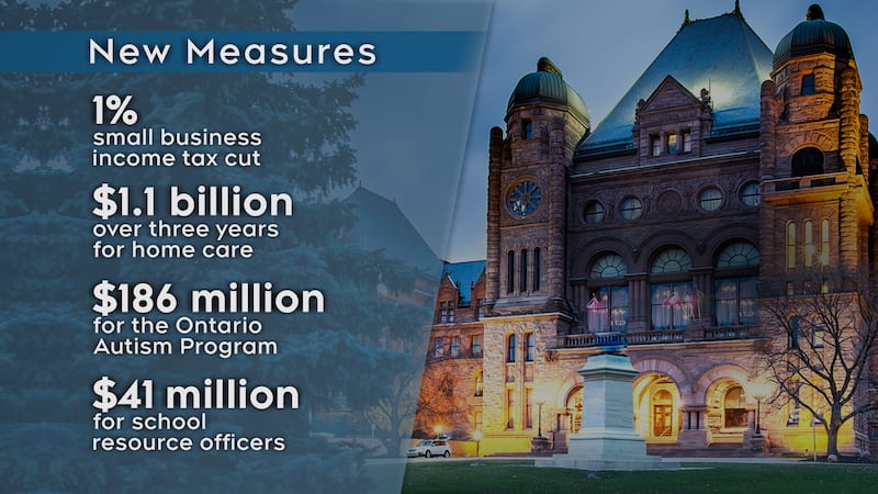 The budget, titled “A Plan to Protect Ontario,” lays out some new spending on programs like home care, and post-secondary education, but also includes billions for tax breaks for buyers of new homes and small businesses.