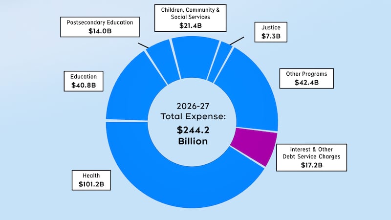 The $244.2 billion budget includes $101.2 billion for health care, $40.8 billion for education and $14 billion for the post-secondary education sector.