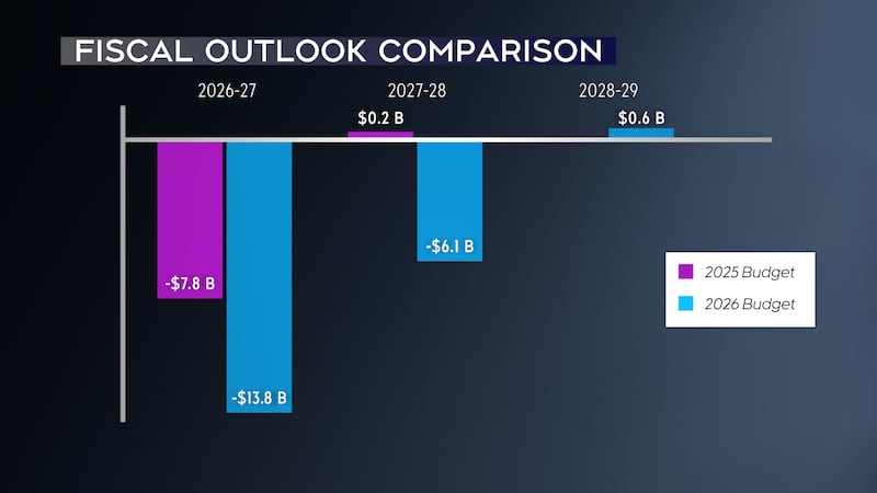 That is up from the $7.8 billion deficit it projected for 2026-27 in last year’s budget.
