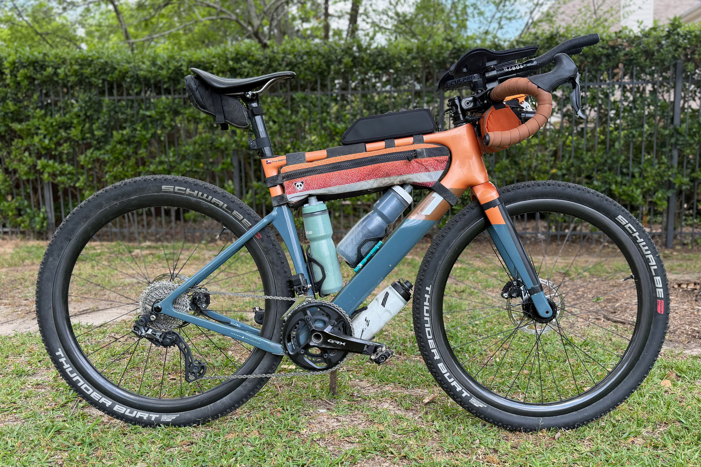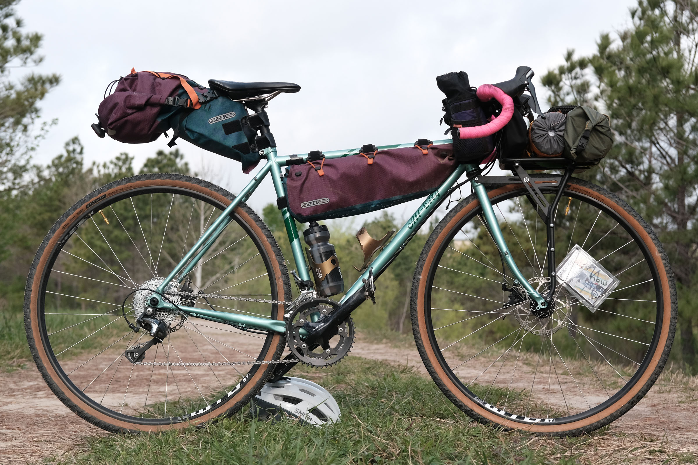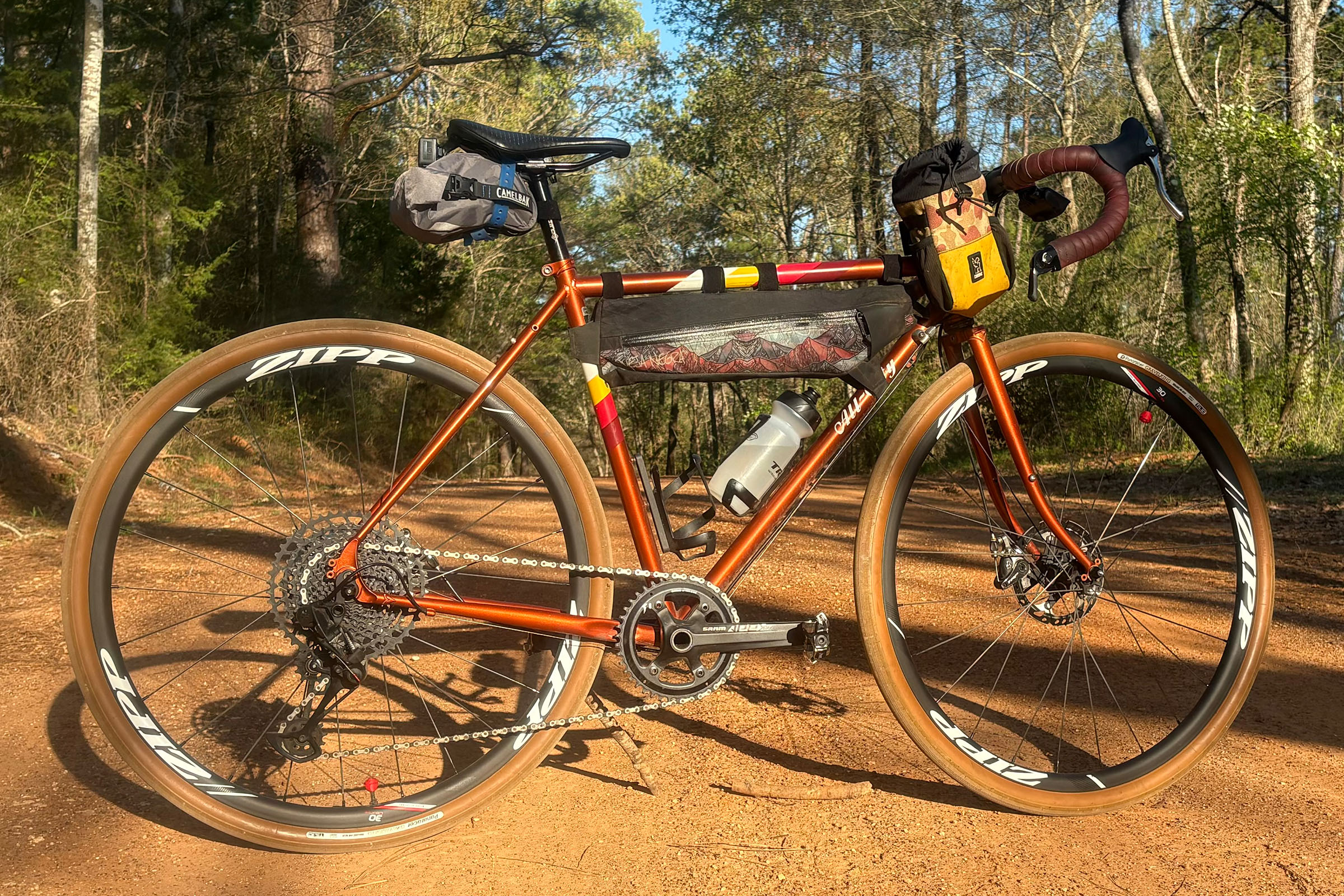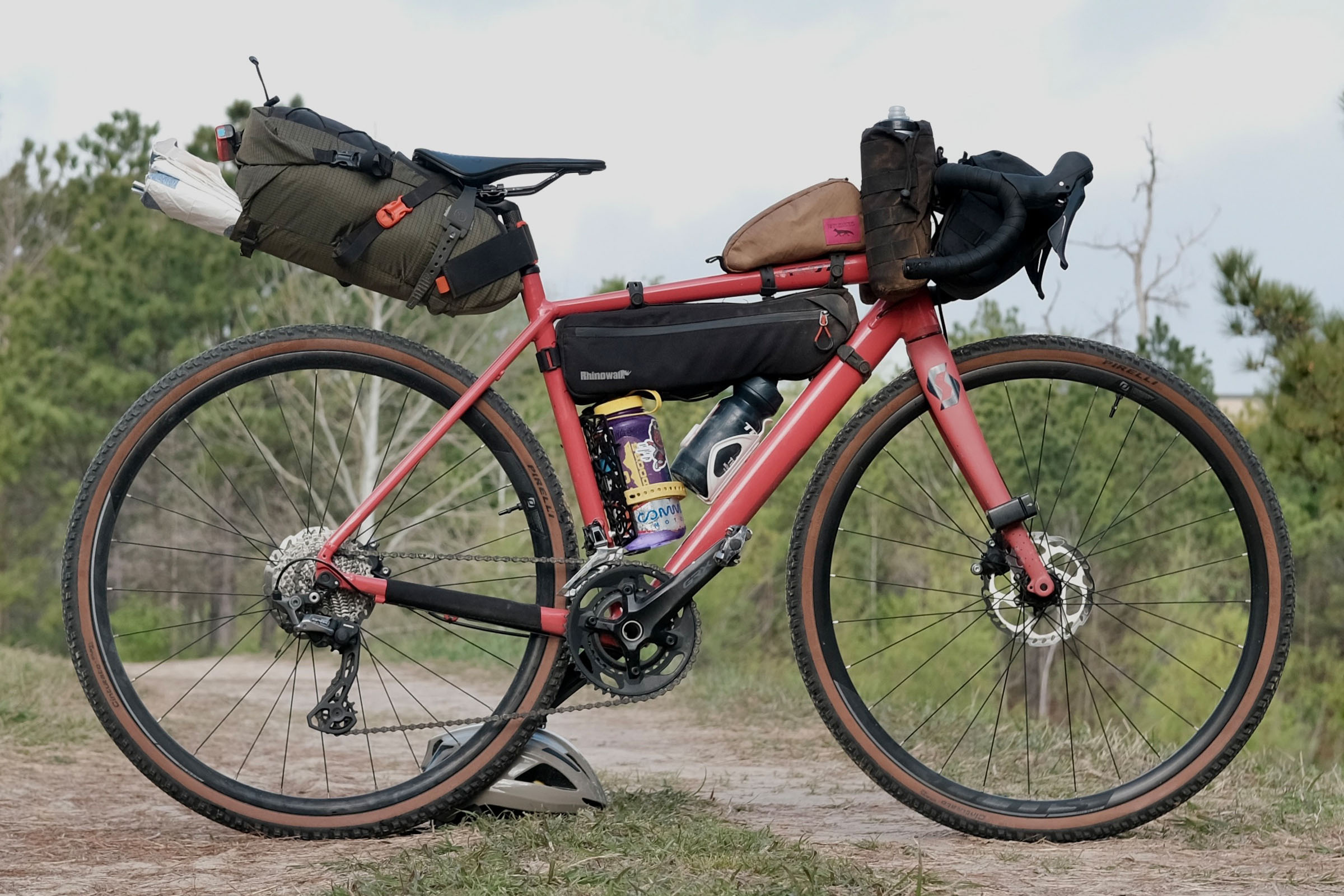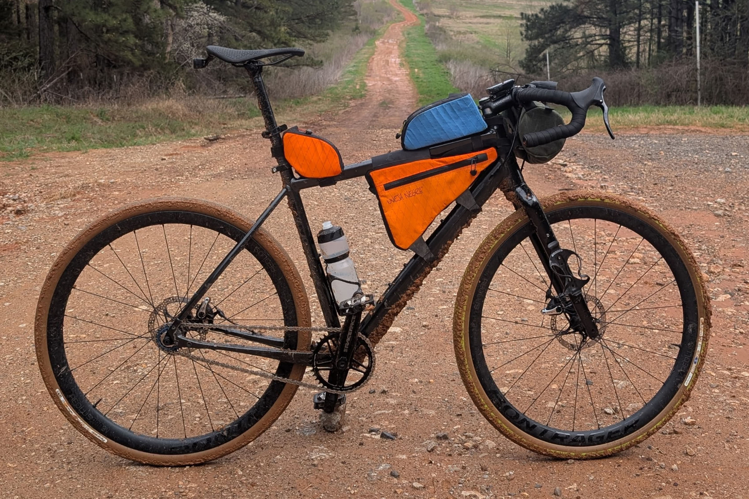 GEAR HIGHLIGHTS: The Schwalbe G-One RX tires are the standout—they feel purpose-built for this route, especially with the mix of gravel, sand, and likely mud through the piney woods. If I end up running it, the Rambler bag is a favorite piece of gear—simple, handmade, and just works.