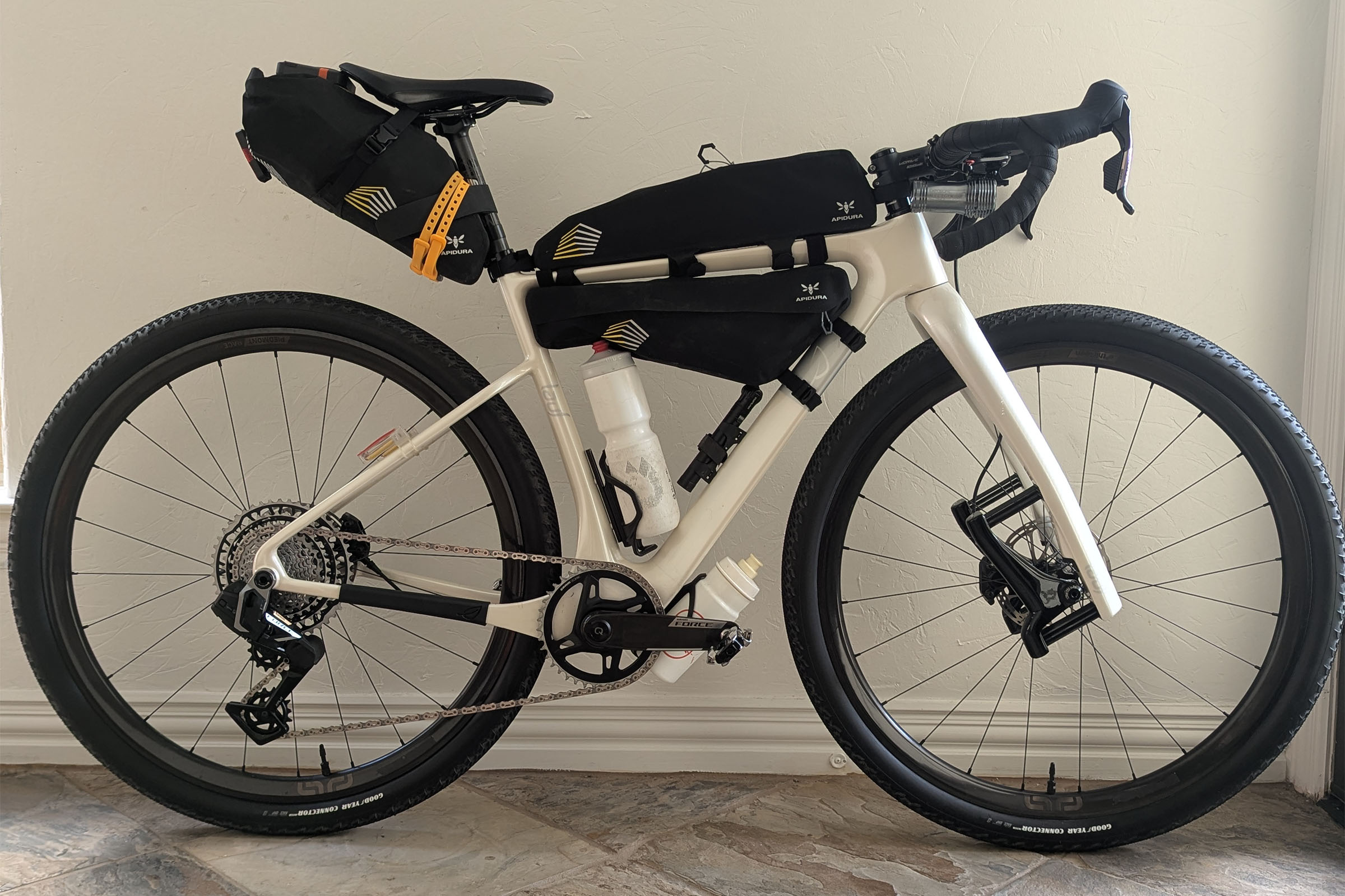 BAGS: I’ll be using a Rogue Panda top tube bag, USWE frame bag, and a Silca saddle bag.