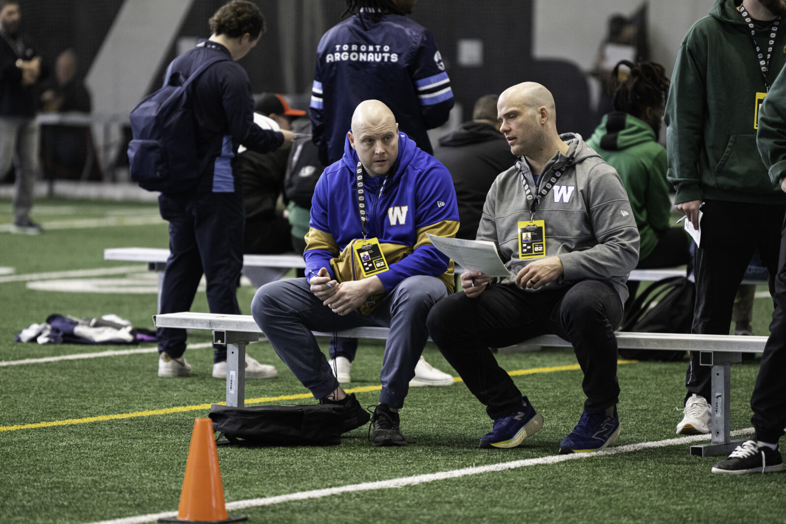 Thomas (left) alongside Blue Bombers Director of Football Operations Matt Gulakow