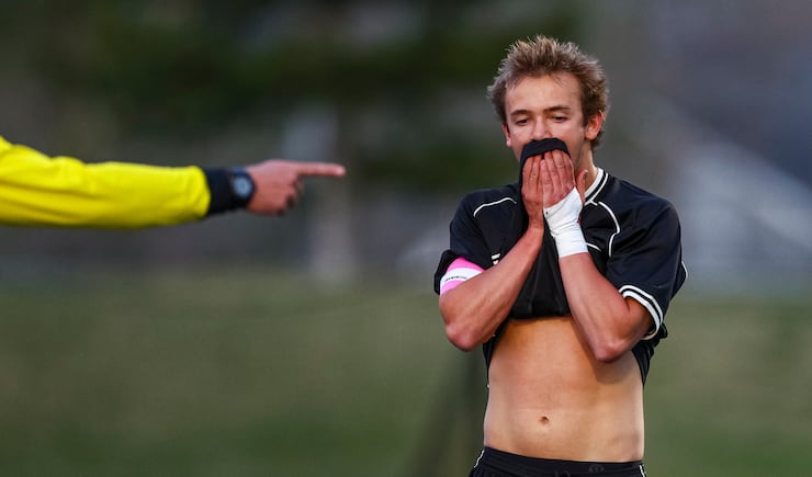Corner Canyon’s Holden Jones (11) reacts after missing a penalty kick during the first half of the game against Lone Peak at Corner Canyon High School in Draper on Friday, March 27, 2026. | Rio Giancarlo, Deseret News