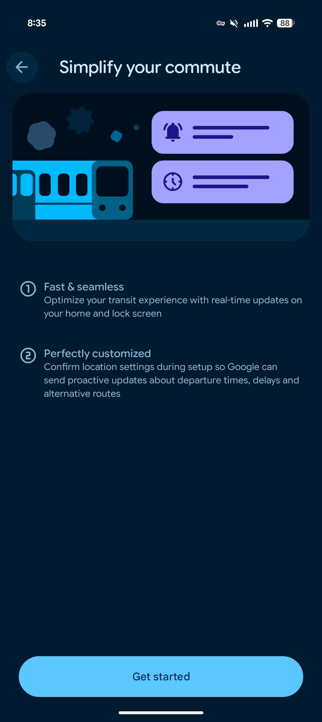 At the very bottom, tap “Set up commute notifications” to “Stay ahead of your commute with real-time updates on departure times, delays, and alternative routes.” (See the middle screenshot in the cover image above.) These updates appear in At a Glance on your lockscreen and at the top of your homescreen.