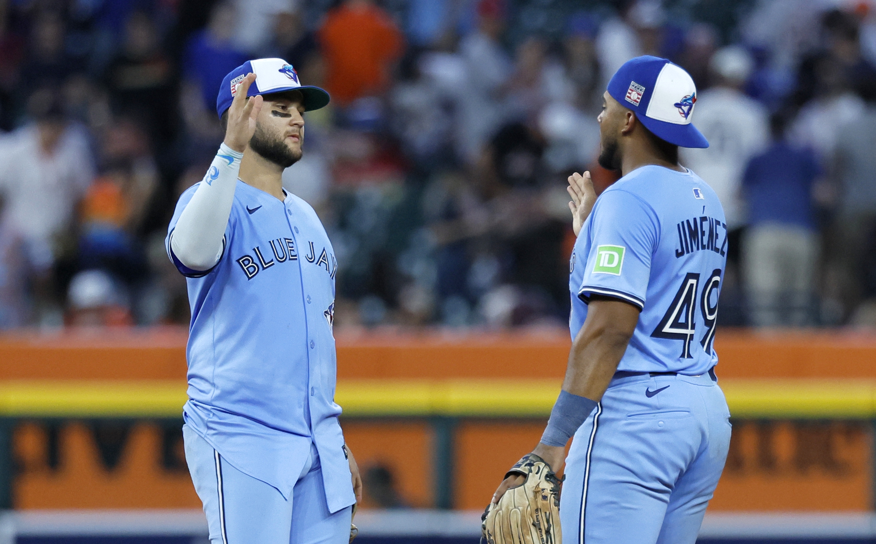 GettyDETROIT, MI – JULY 26: Bo Bichette #11 of the Toronto Blue Jays celebrates with Leo Jiménez #49 after their team’s 6-1 win over the Detroit Tigers at Comerica Park on July 26, 2025 in Detroit, Michigan. (Photo by Duane Burleson/Getty Images)
