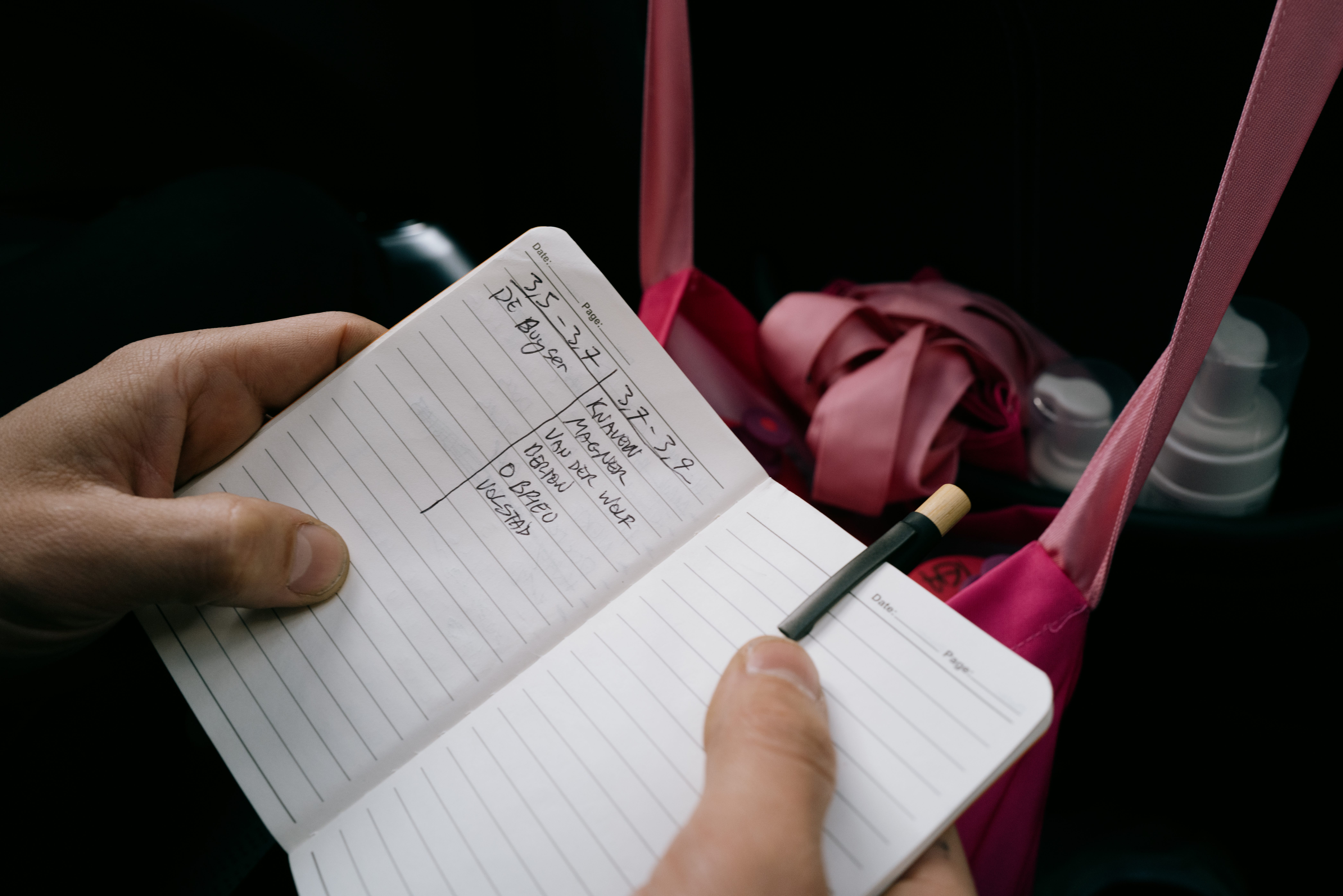 It’s 10:45 am, and just like clockwork, the big pink team bus arrives with two team cars in tow. In the blink of an eye, the bikes are unloaded, and the riders’ machines are lined up outside the bus. Duyn and fellow sports director Daniel Foder gather for a last-minute chat, as the athletes make their final preparations.
