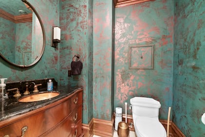 The main floor All of the powder rooms on this floor feature “hand-painted Venetian plaster and antique fixtures.” (Sam McDadi Real Estate Brokerage)