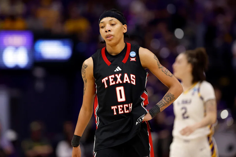 Snudda Collins #0 of the Texas Tech Lady Raiders reacts during the second half of a game against the LSU Tigers in the second round of the 2026 NCAA Women’s Basketball Tournament at Pete Maravich Assembly Center on March 22, 2026 in Baton Rouge, Louisiana.