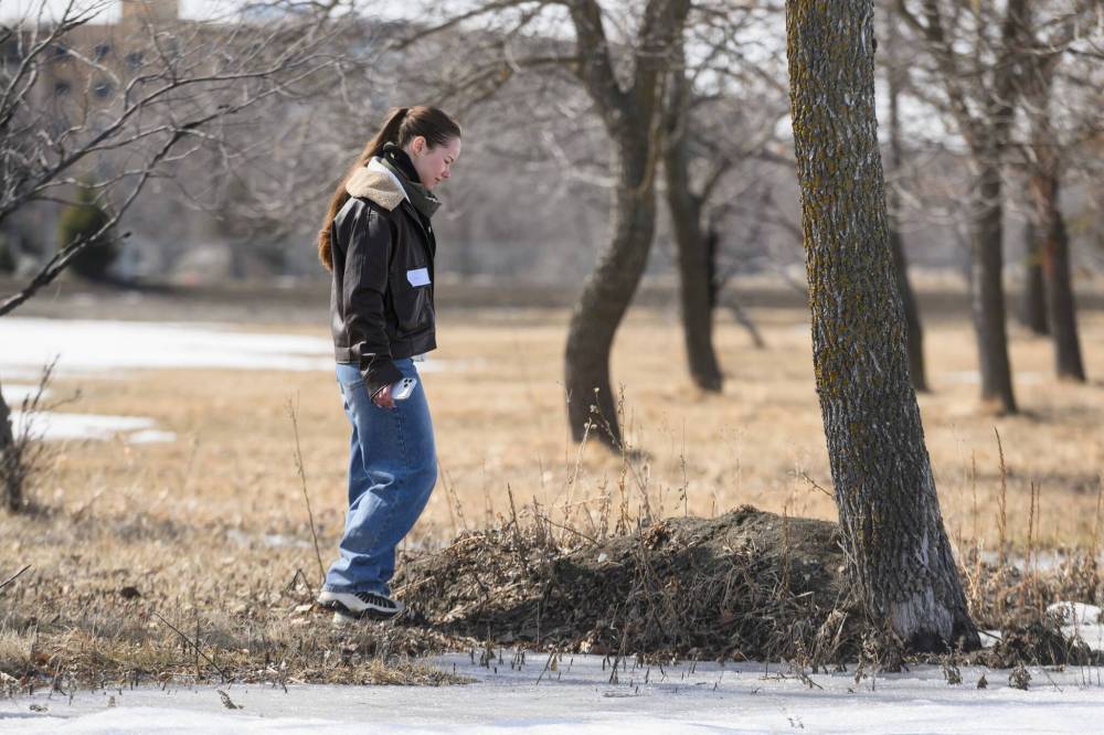 A group had already searched St. Vital Park for several days. With the snow beginning to melt, more ground could be surveyed. On Friday, the shelter by the duck pond served as a home base.