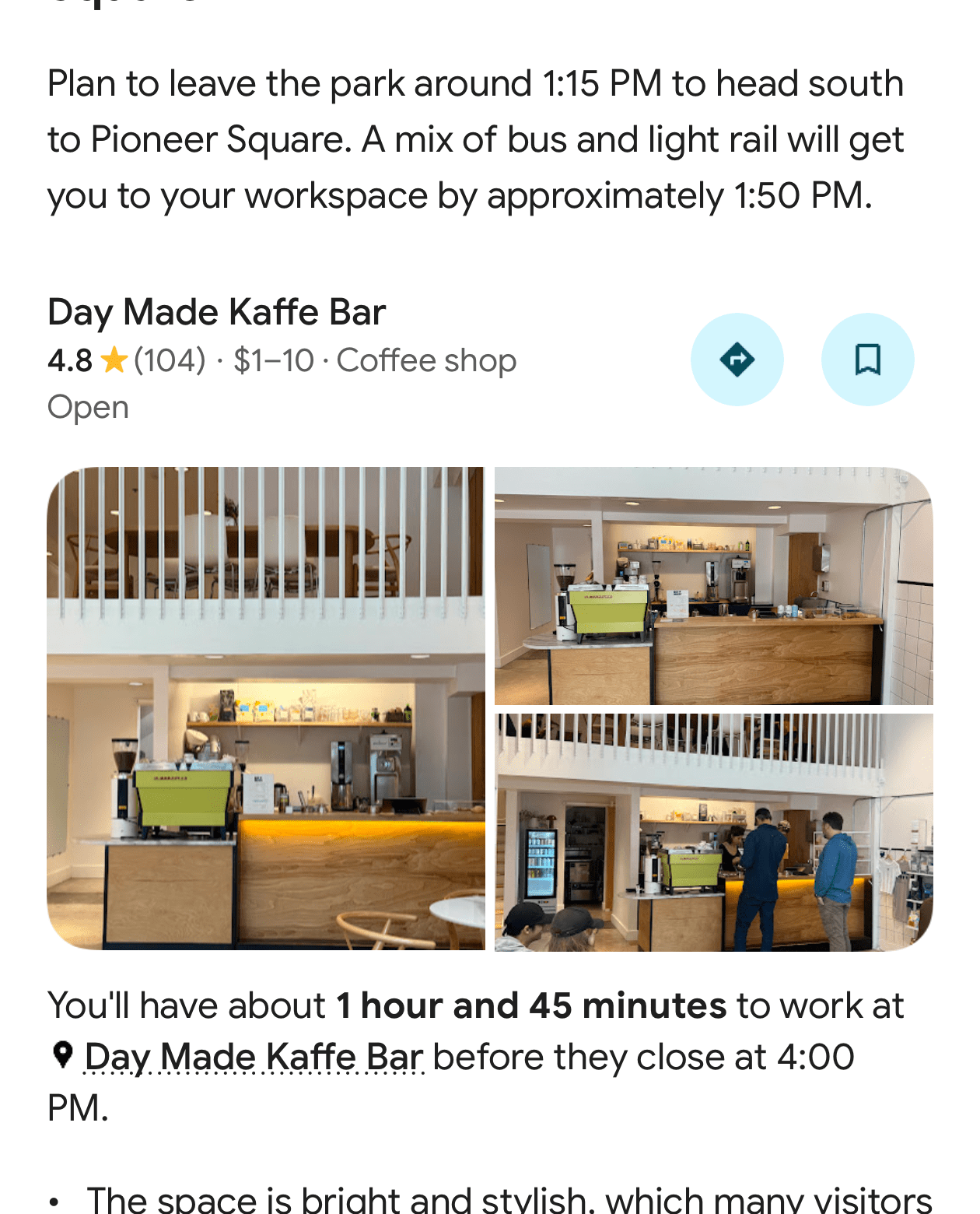 Gemini found a coffee shop I hadn’t been to yet in Pioneer Square, which is honestly impressive.