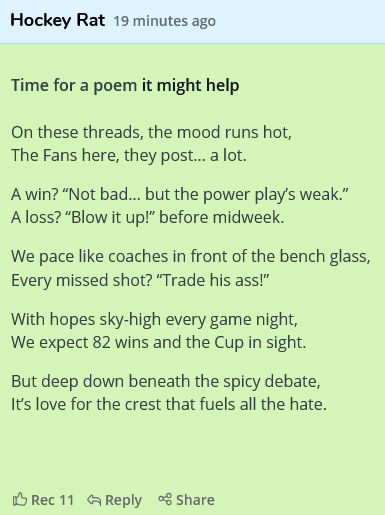 With 40 minutes played, Montreal has eight shots on net. A crowd that watched the team rattle off wins on the road and gave everyone a loud cheer at the beginning of the game is starting to boo the effort. Two high-danger chances after two periods.