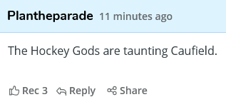 The crowd chants “Cau-field!” as Cole steps on the ice for his first shift. When this crowd last saw him, he had 44 goals.