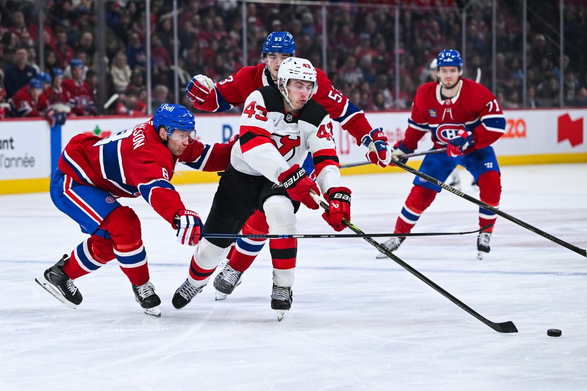 Just as Guhle’s penalty expires, Jack Hughes drives around Montreal’s coverage and sends a low shot through Fowler’s five-hole. It goes off the post, but Timo Meier is at the top of the crease to pound the puck in.