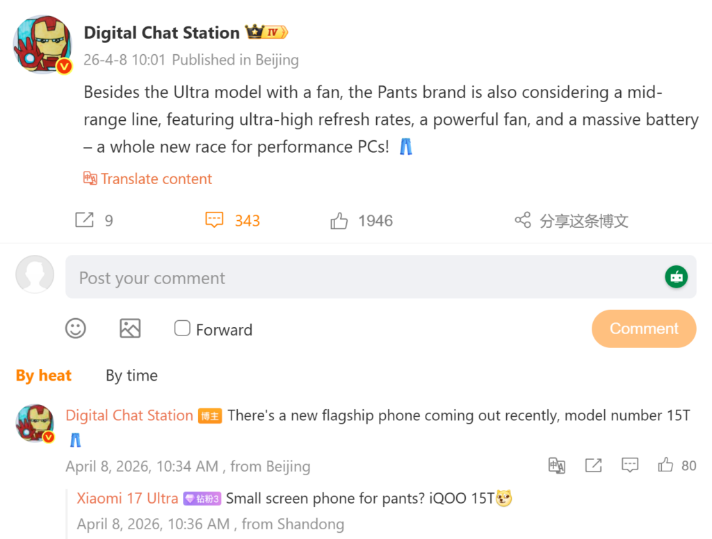 A Weibo post by tipster Digital Chat Station suggests that the new device could be called the iQOO 15T. It is expected to borrow certain high-end features from the Ultra model, including a built-in cooling fan.