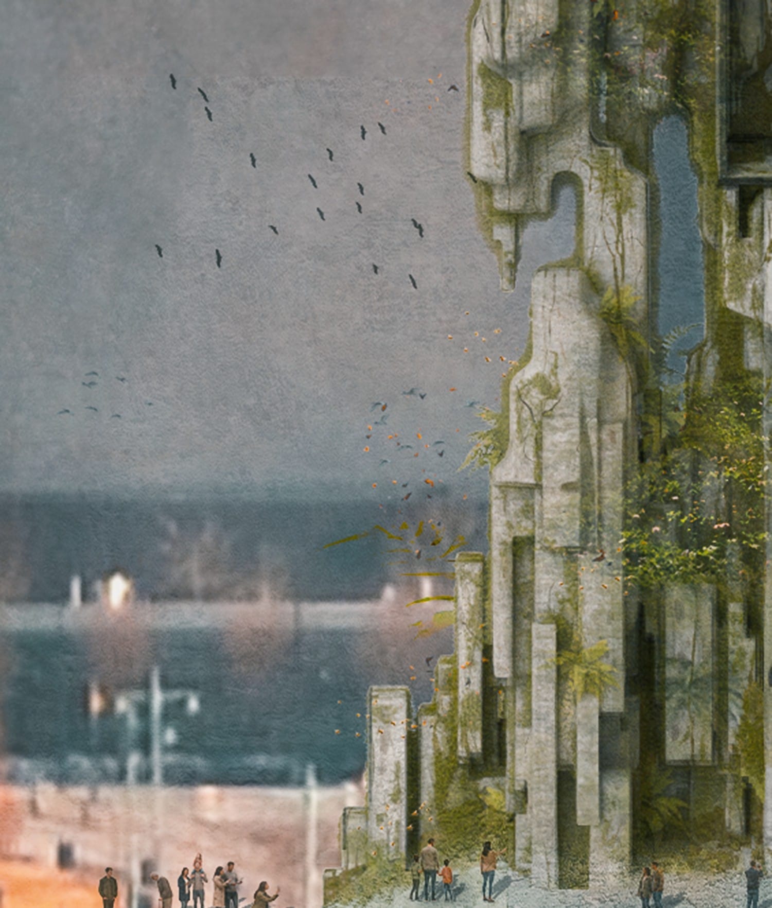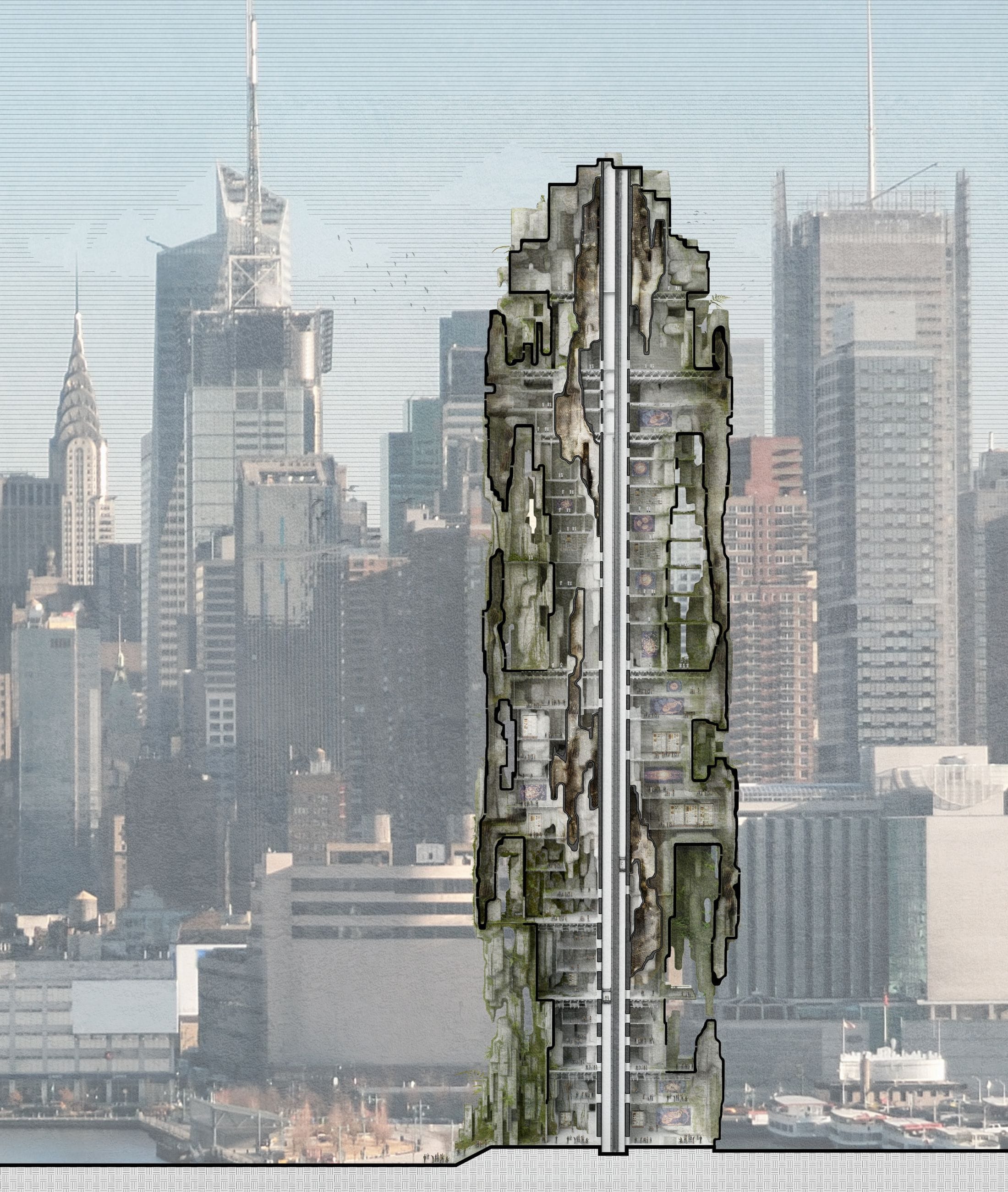 Description excerpt: “The Living Refuge is a speculative skyscraper project that reimagines the high-rise as a vertical ecological infrastructure for pollinators in Manhattan. Developed in response to the accelerating decline of pollinator species caused by habitat fragmentation, pesticide exposure, and urban environmental stress, the project proposes a new role for architecture—one that actively supports biodiversity rather than displacing it.”