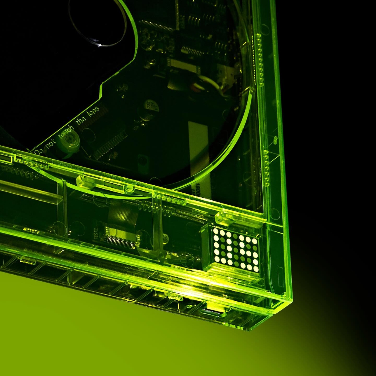 The Cp1 in Neon Yellow is the most immediately striking. The entire frame is cast in that charged, electric green-yellow, and when you look at it, you can see every component underneath lit by the color of the shell itself. It doesn’t look like a product. It looks like something you’d find in a design museum sandwiched between an Olivetti typewriter and an early Apple prototype. The edges illuminate in a way that makes it feel alive, like it’s doing something even when it’s sitting still.