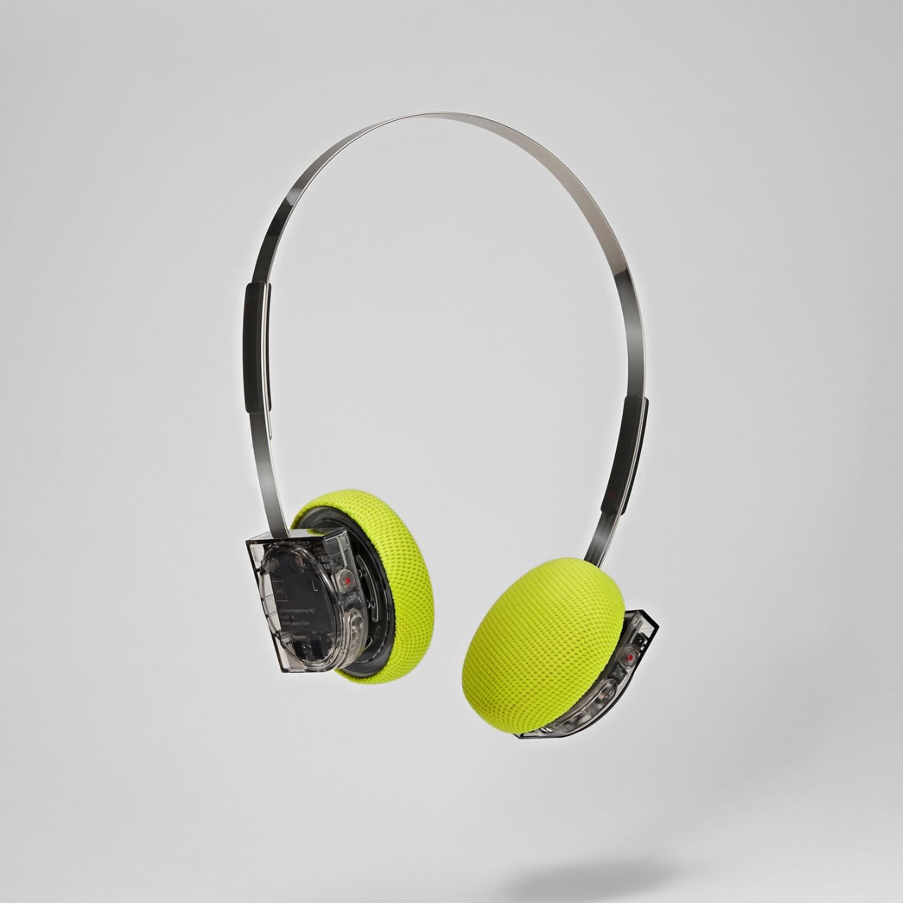 The Hp1 Clear follows the same logic. The housing is stripped back to transparent, the internals are exposed, and then the lime yellow ear pads arrive as the whole color story’s punctuation mark. It’s a contrast that shouldn’t work as well as it does. The clear mechanical housing next to those soft, textured yellow cushions is the kind of pairing that reads as both street-ready and gallery-worthy at the same time. Techwear people are going to love this. Interior people are going to love this. That’s a rare overlap.