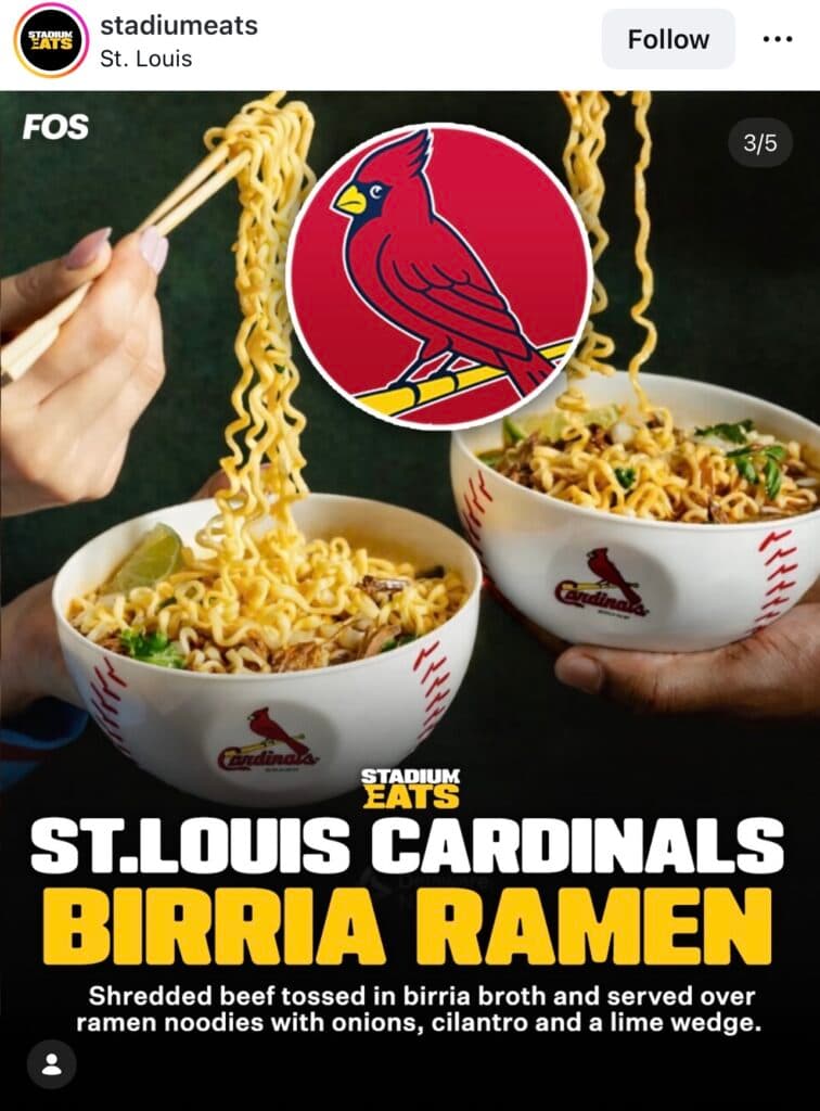 Ramen is a great idea any day, and the St. Louis Cardinals decided to take this quite literally as they added Birria Ramen to their menu.