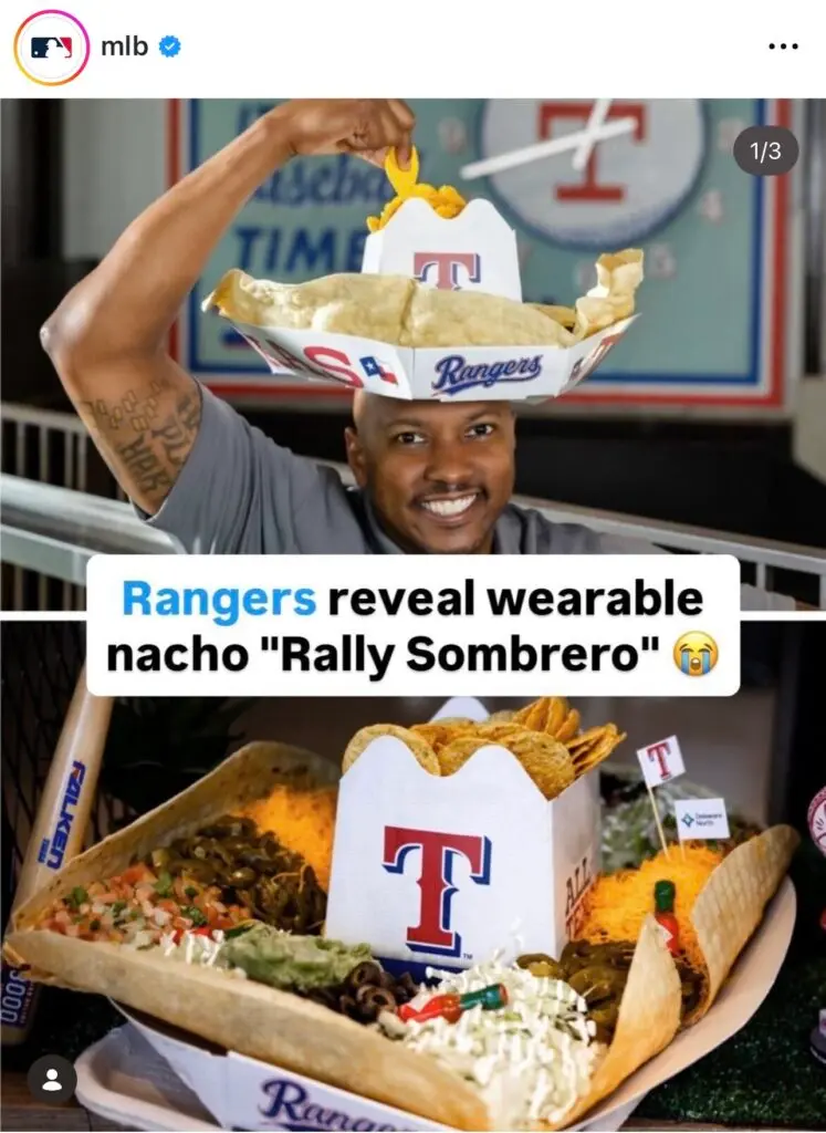 The Texas Rangers created a full-blown sombrero with nacho chips, cheese, lettuce, jalapenos, pico de gallo and many more ingredients. Of course, you can wear this on your head as you’re consuming it – it’s meant to literally take everyone’s breath and attention away.
