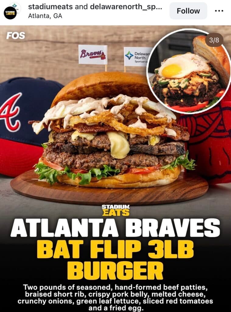 This burger from the Atlanta Braves is special because its content is truly massive. It may not be the most massive in its size, but packing this many ingredients in a burger is an impressive feat.