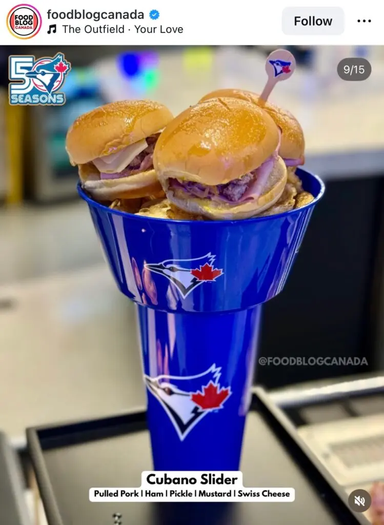 There isn’t anything particularly overwhelming in terms of food offerings from the Blue Jays side this year. But if there’s anything that looks slightly daunting, it would be the Cubano slider that comes in a long souvenir cup with potato chips underneath.